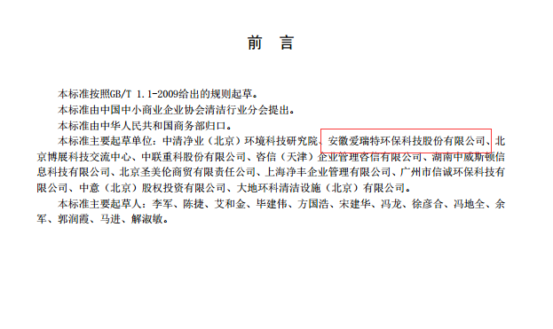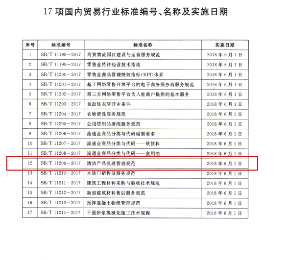2018年6月1日,由愛瑞特主持起草的商務(wù)部行業(yè)標(biāo)準(zhǔn)《清潔產(chǎn)品流通管理規(guī)范》正式實(shí)施。